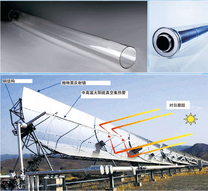 槽式太阳能热发电系统的核心部分就是聚光集热系统,而聚光集热系统的核心部件就是中高温太阳能真空集热管。 |