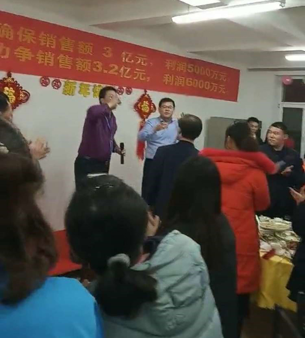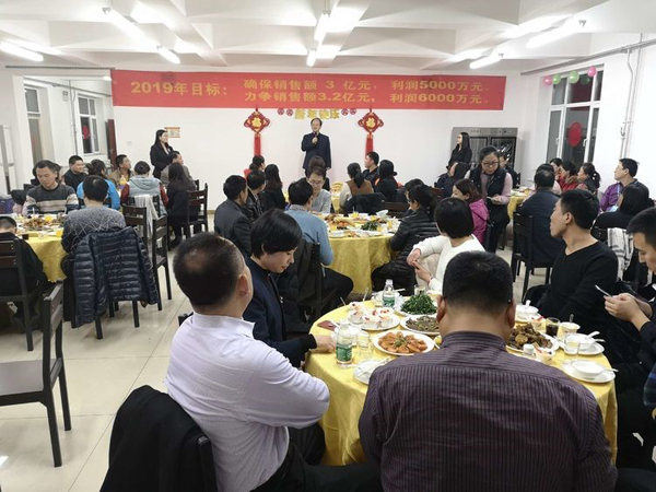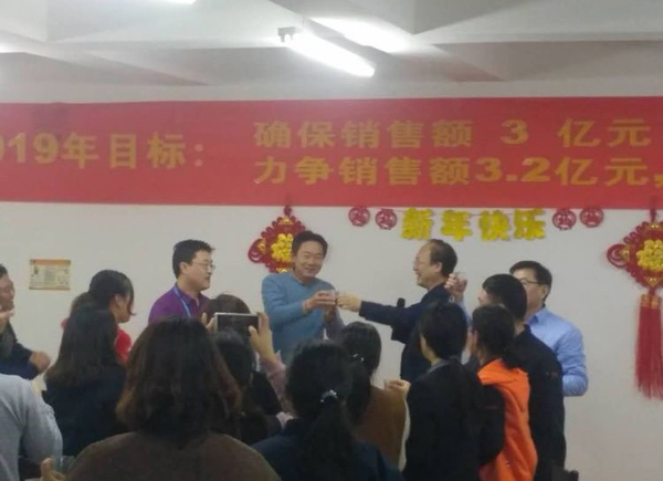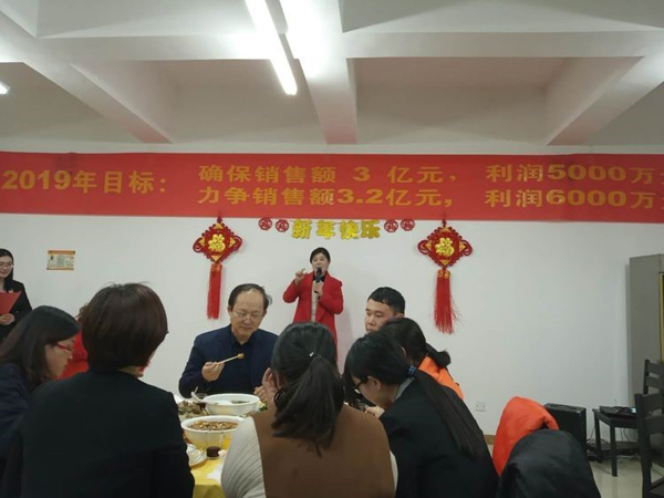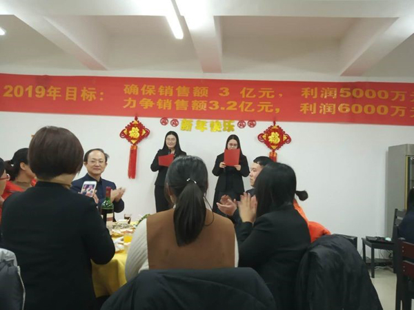 活动第一项:Boss致辞! 董事长首先给大家拜年鞠躬,感谢大家一年来的付出。回顾2018年的艰难与艰辛,社会经济形势疲软,公司虽然紧张但已经是同地区过的最好的大公司,感谢大家这一年对公司的信任与支持,同时也肯定了2018年是公司业绩最优,技术突破最多,成绩最好的一年。 展望2019年,国家政策重大利好,公司度过了最艰难的时期,资本支持足,公司将进入高速发展阶段。要求利润由两千多万要迈向五千多万,并挑战六千万目标。看来小伙伴们要撸起袖子加油干啦!!! 董事长强调公司由新三板改创业板或科创板,公司产品属于高精尖,国家重点支持的产业,是几代人干不完的事业。大家要对公司有信心,而且爆料董事长将给予一部分老员工与干部低价购买股份的机会,公司是混合所有制公司,希望大家共同都享受公司的利润分红。小伙伴们,赚钱的机会要来了。不知道谁会有这样的荣誉呢,总之大家好好干,衷心的把事业做好总会有回报的。 接下来董事长重点强调了对所有参加的员工提出了工作要求,大家要注意了,接下来各部门开会可要好好分析工作如何开展,如何达到董事长的要求: 1 行政管理将是2019年重要的工作,弥补公司行政管理的短板,各部门要共同加强职能部门管理意识,建立流程化思维,服务好生产与销售。 2 要积极开展批评与自我批评工作,用好国家领导人都在用的管理工具。使全员工作的同时,有批评有奖励有评价有意义。吾日三省吾身! 3 提出电子商务部要加强设计思维,多开发高端日用品,不走量的路线,让我们用的茶杯酒杯都是我们自己的中硼产品,把中硼这一优势材料推广出去。 考核部提醒大家,接下来的工作大家要好好思考了,各部门会议要强调2019年工作该如何开展了。