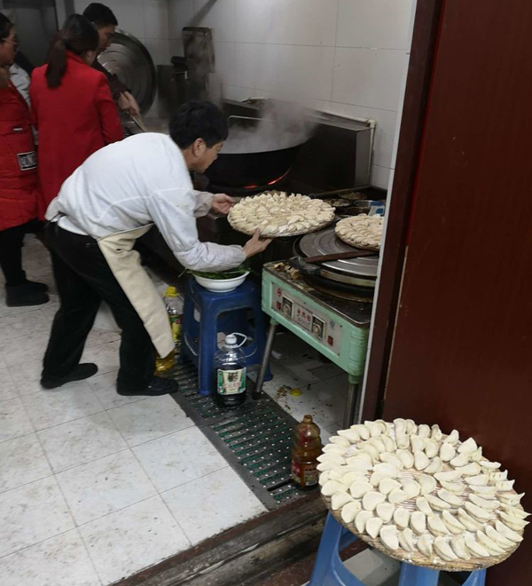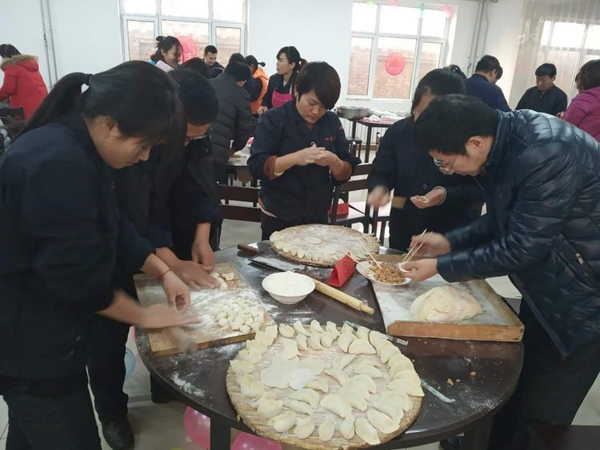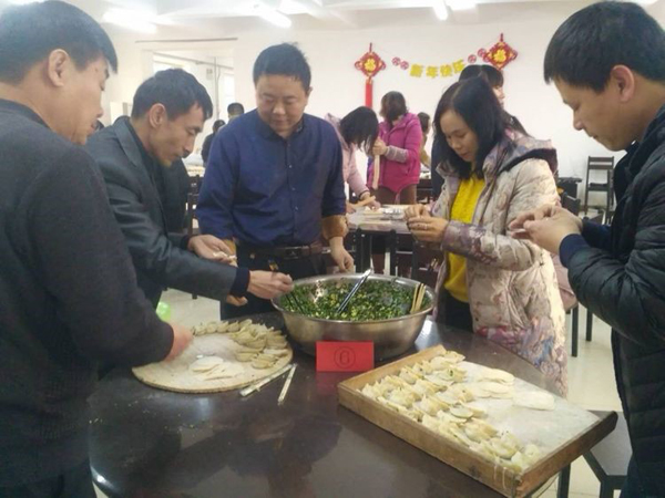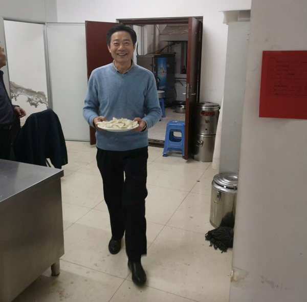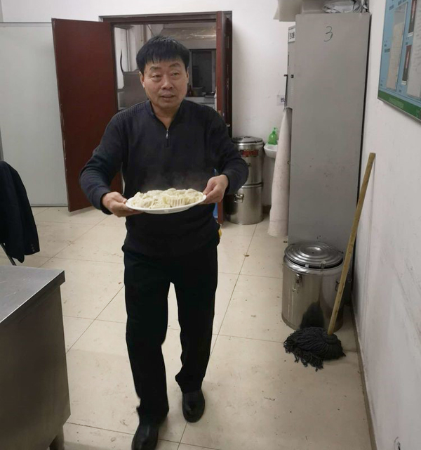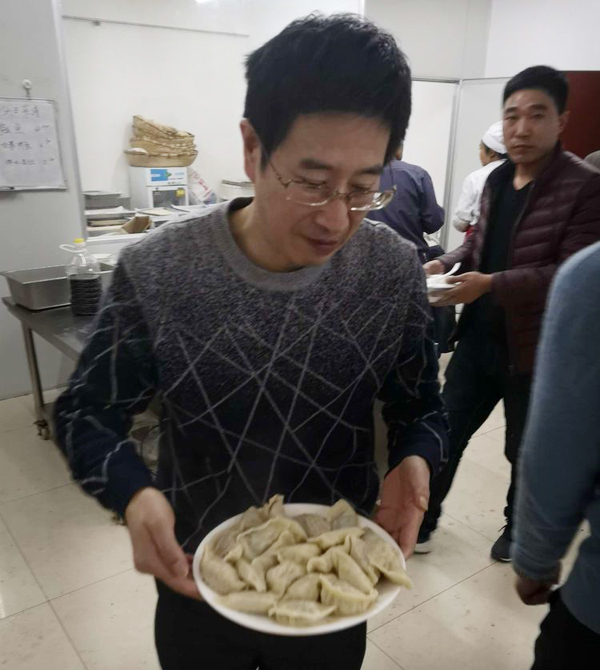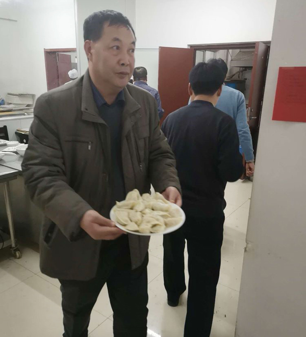 张永华总,大化来的高级高管,虽然膝盖疼痛,但是为咱们员工端起饺子来,活力十足,一下年轻20岁。