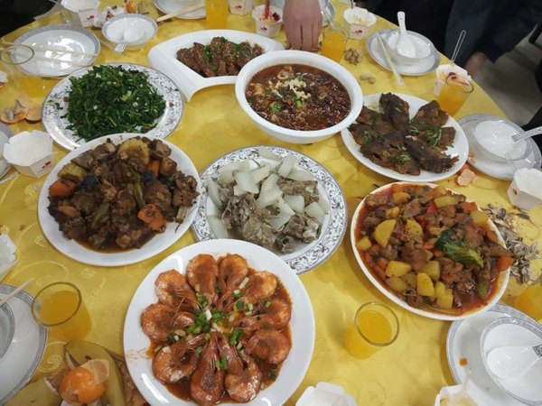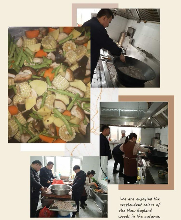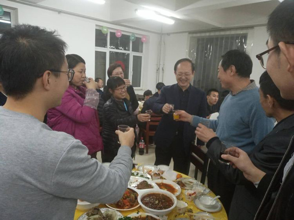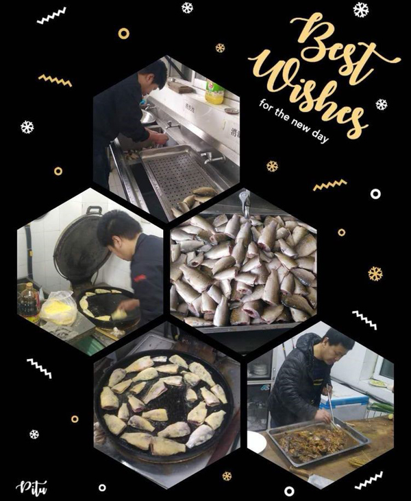 本次活动最大的高潮,董事长提酒一杯敬公司的恩人王建民主任,救公司于危难之际,是雪中送炭的好人。 最后公布本次菜品评选的最终结果: 最好看的 大盘鸡(刘哲) 红烧鲫鱼(刘岩) 最好看的 可乐鸡翅(芮培震) 家长茄子(李蒙蒙) 最香的 羊蝎子(路春雨) 水煮肉片(许雷雷) 油焖大虾(王璇) 最有创意的 蛋糕甜蜜蜜(王芳) 大丰收(苏彦) 最暖胃的 南瓜汤(孟明) 菠菜丸子汤(李洪娜) 我们决定以后定期安排职工高手帮厨,改善大家的伙食咯!让大家吃饱吃好,大家伙才能好好工作。