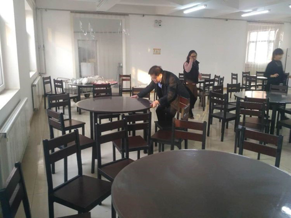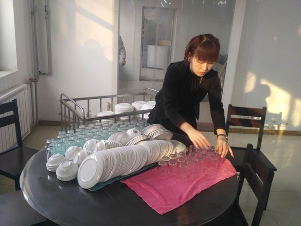 活动结束,大家共同帮助食堂工作人员收拾餐桌,四星人就是高素质。